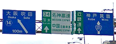 [大阪 吹田(14)]や「茨木IC」の案内標識